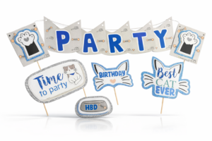 Este kit de cumpleaños para gatos , es un hermoso set decorativo con colores unisex. Ideal para celebrar con tu gato en la tranquilidad de tu casa y generar un vínculo mayor con tu mascota. Incluye hermosa decoración con temáticas de gato y elementos que lograrán dejar un recuerdo perdurable en tu carrete de fotos.